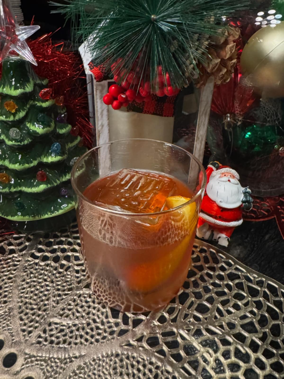 Rye, Cognac, Sweet Vermouth, Benedictine, Peychaud’s bitters, Angostura bitters