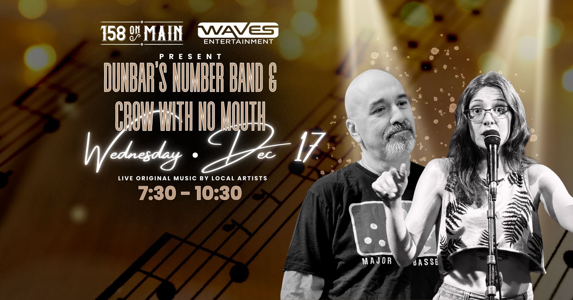 Dec. 17th is our weekly original music night—this week featuring two bands: Dunbar’s Number Band and Crow With No Mouth! Join us from 7:30–10:30 for an evening of all-original music from both of these three-piece bands!